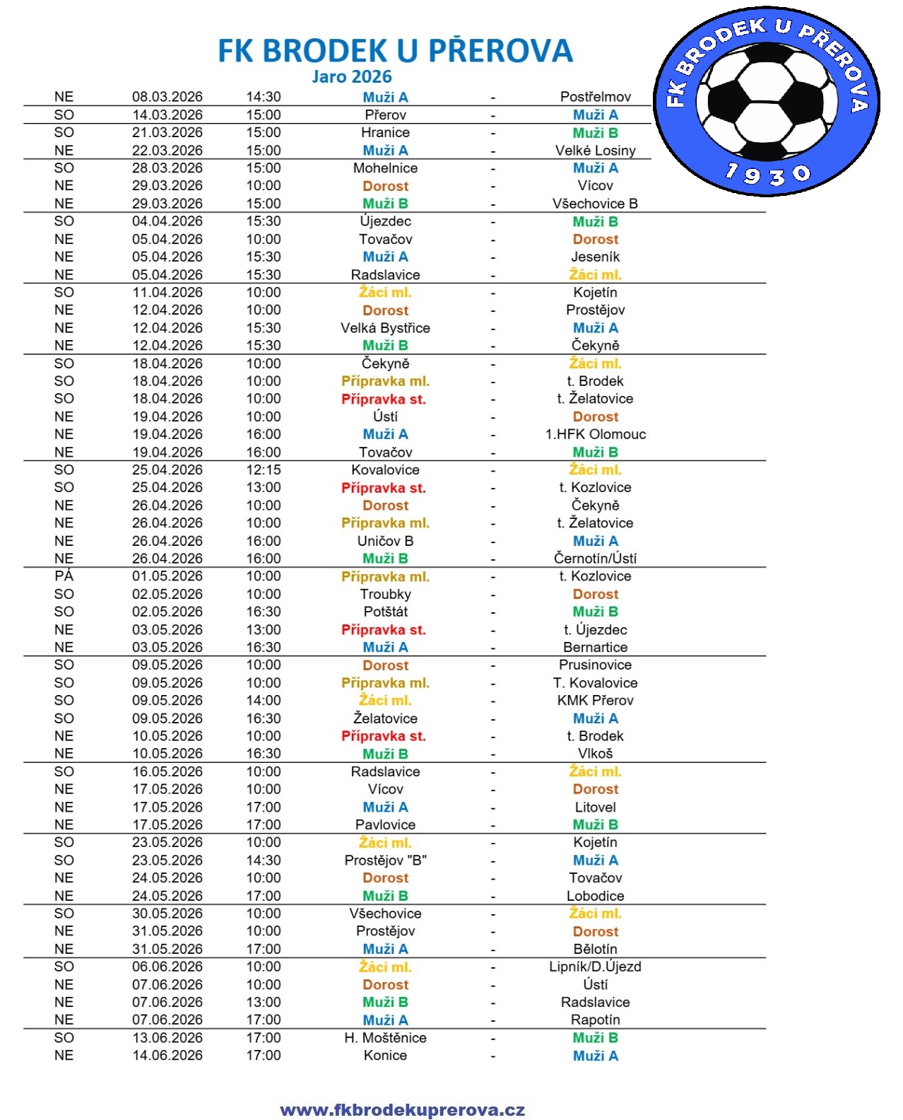 V přípravě nás čekají postupně 25.1. FK Nové Sady v 15:00hod. (UT Holice), 1.2. FK Šternberk ve 12:00 hod. (UT Šternberk), 15.2. TJ FS Napajedla ve 12:00 hod. (UT Luhačovice), 22.2. FC Beňov ve 14:00 hod. (UT Chropyně) a přípravné utkání, které se má konat 1.3., bude ještě upřesněno.